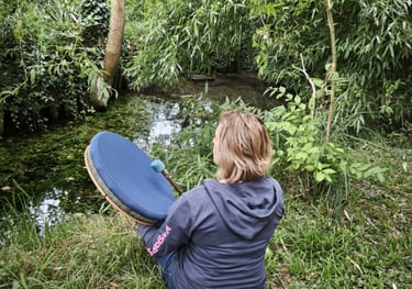 Séance individuelle (ou en groupe) de soin sonore & accompagnement à libérer son corps par le chant de mantras, le chant des chakras, la danse des voyelles et le chant intuitif accompagné ou non d'un instrument que je prête à la personne & ancrage au tambour et ancrage des runes etc...